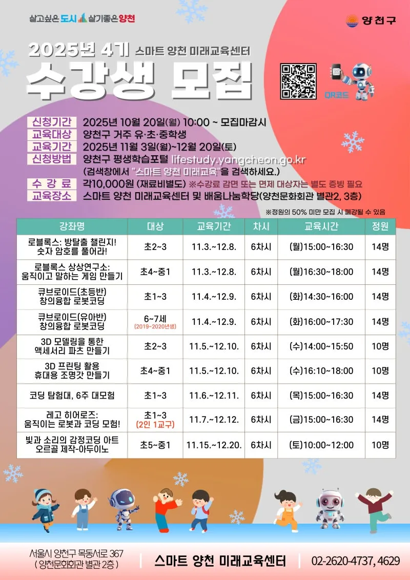스마트 양천 미래교육센터 2025년 정기강좌 4기 수강생 모집