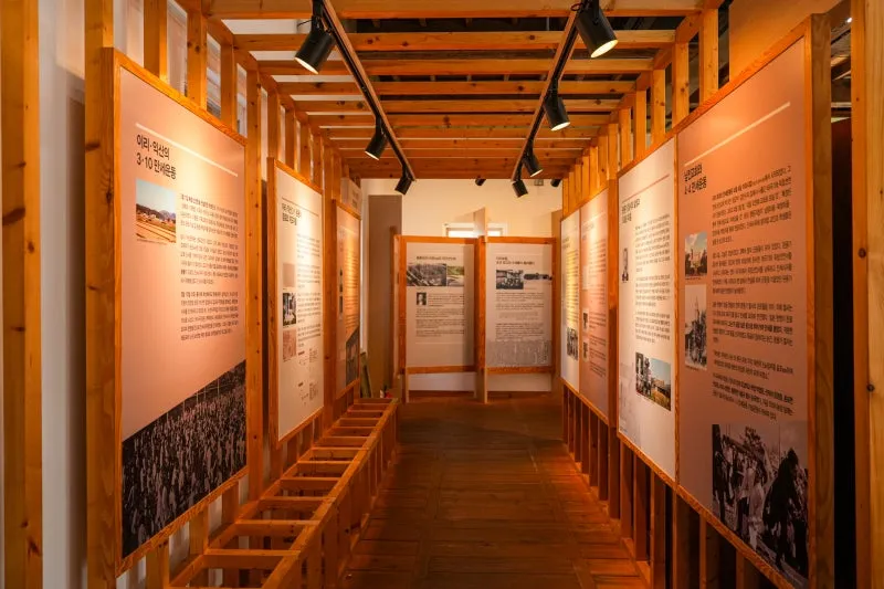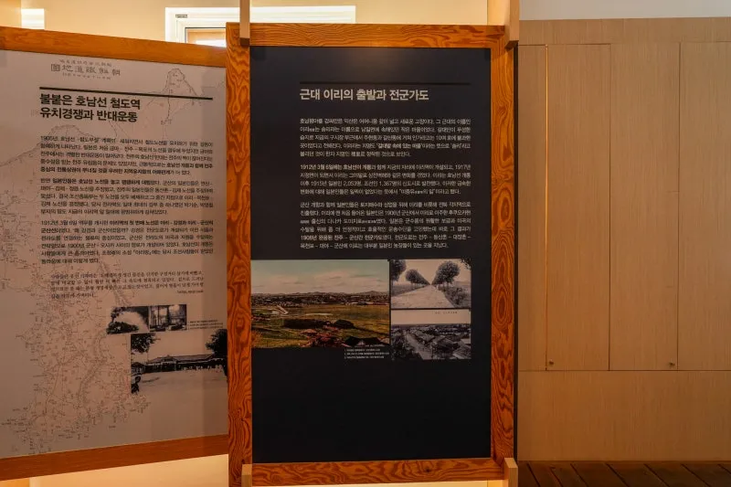 실내로 들어서면 첫 전시실에서는 익산에서 전개된 독립운동과 호남선 이야기,