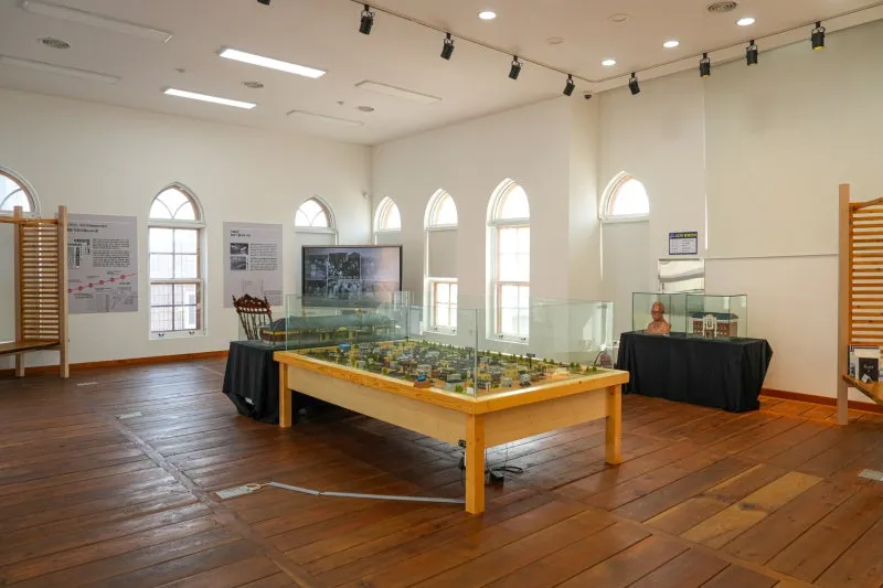 역사관 2층에는 익산의 중앙동 옛 시가지와 철도역 주변을 모형으로