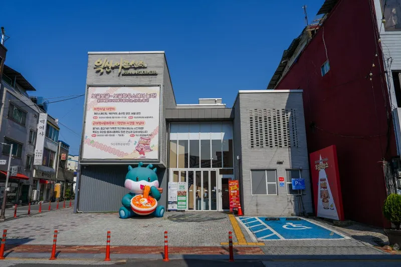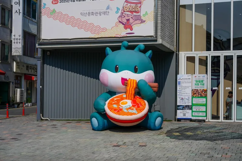 입구에는 익산의 마스코트인 ‘마룡이’가 커다란 라면 그릇을 안고 앉아 방문객을 반기고 있어,