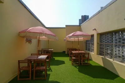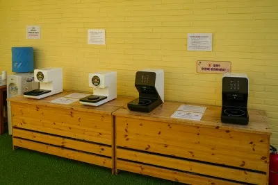 라면을 구매하여 옥상으로 올라가면 라면을 즉석에서 끊일 수 있는 공간과 식사 테이블이 조성되어 있는데요.