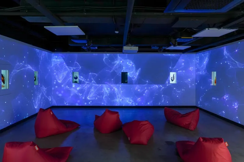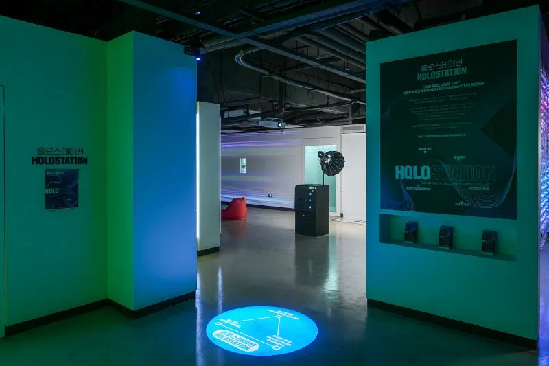 홀로스테이션이라는 홀로그램 기술을 활용한 독특한 공간이 자리하고 있습니다.