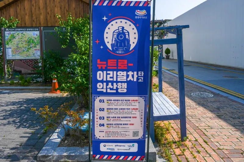 역사관 앞 광장에는 뉴트로 감성이 물씬 풍기는 ‘이리열차 타고 익산행’ 스탬프 투어 안내판이 세워져 있어,