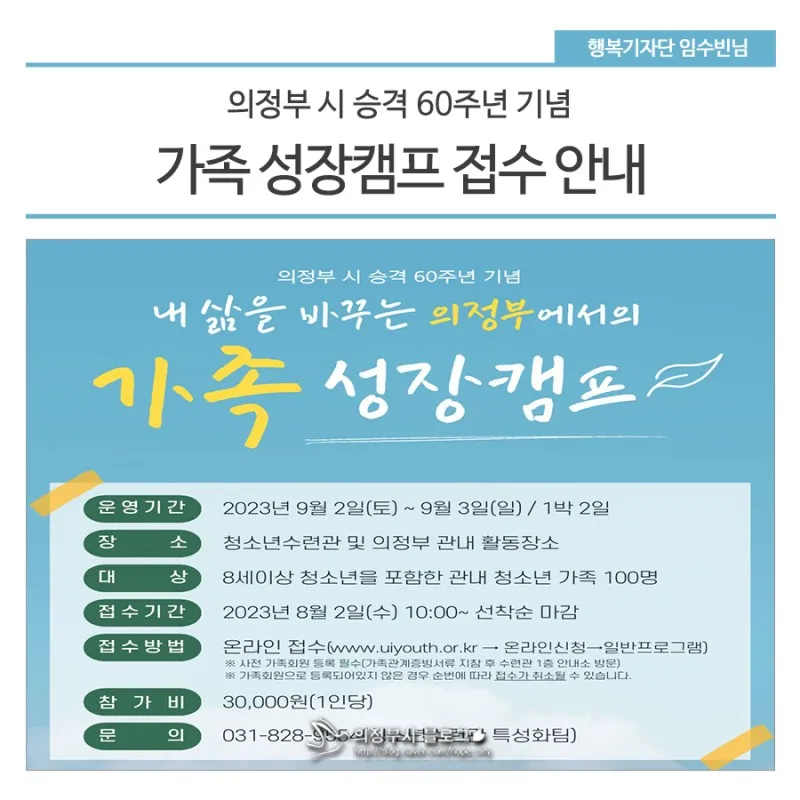 의정부 시 승격 60주년 기념 가족 성장캠프 접수 안내