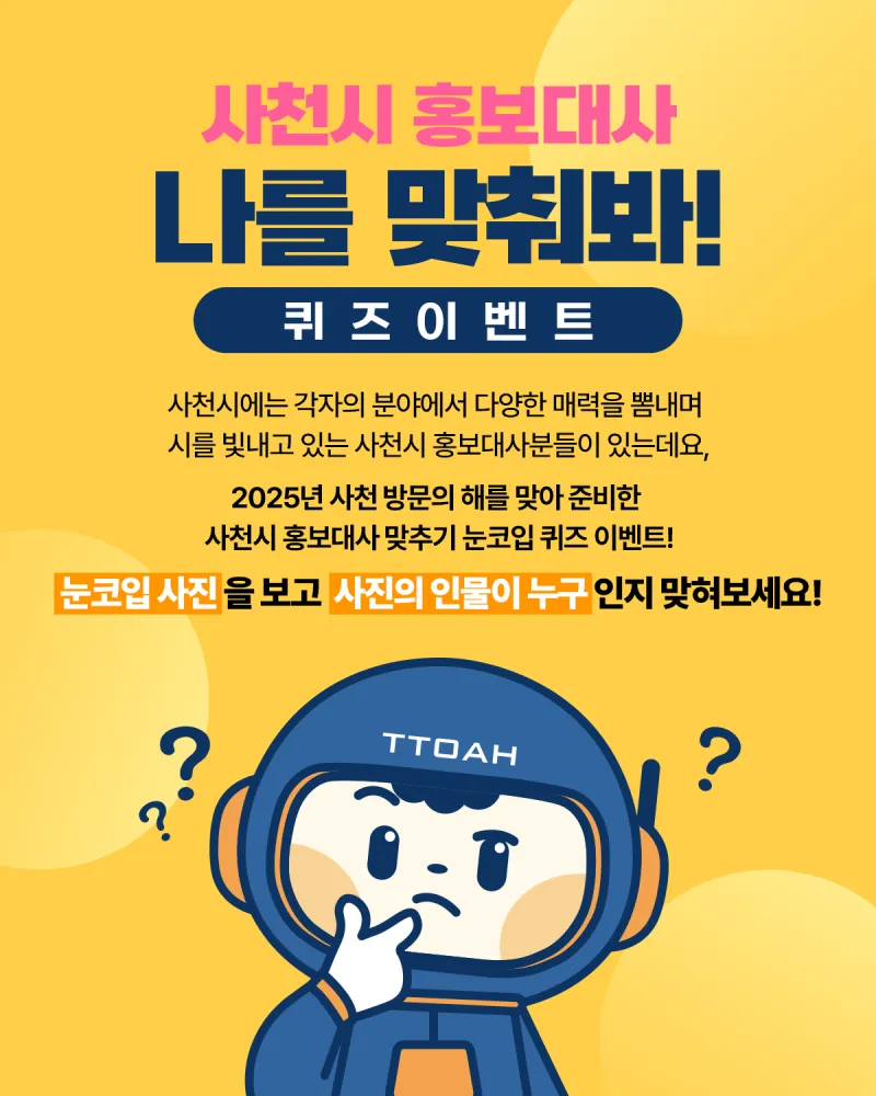 2025년 사천 방문의 해를 맞아 준비한 사천시 홍보대사 맞추기 눈코입 퀴즈 이벤트!