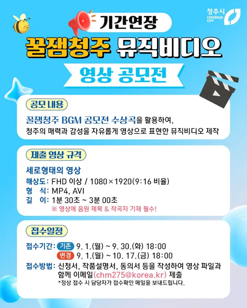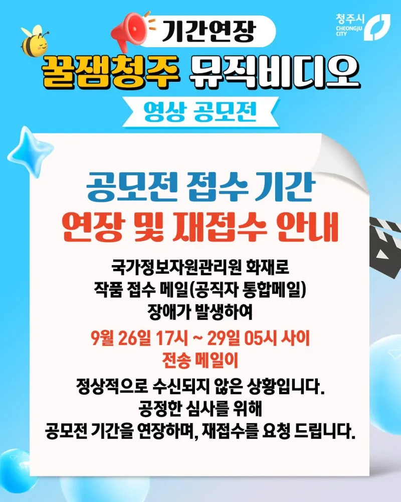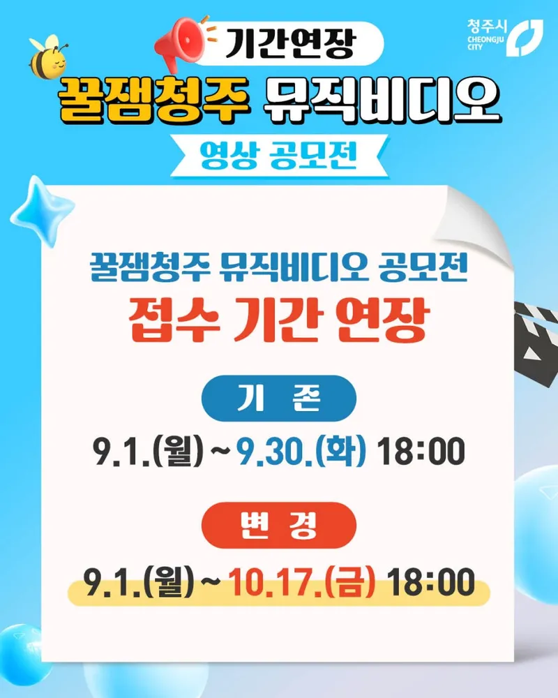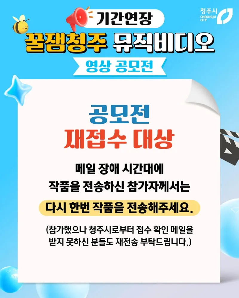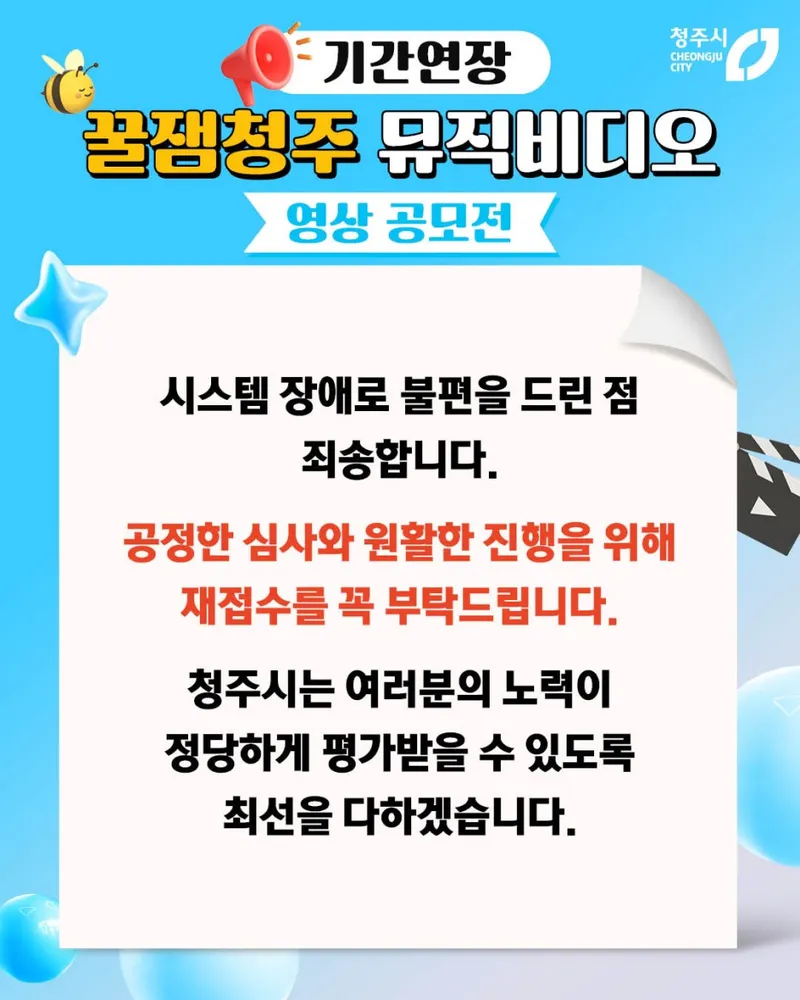 꿀잼청주 뮤직비디오 영상 공모전 접수 기간 연장 및 재접수 안내