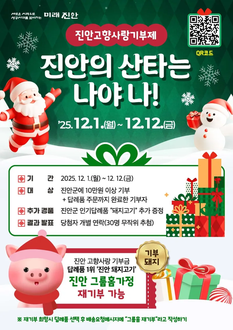 진안군 고향사랑기부제 진안의 산타는 나야 나! 2025. 12. 1.(월) ~ 12. 12.(금)