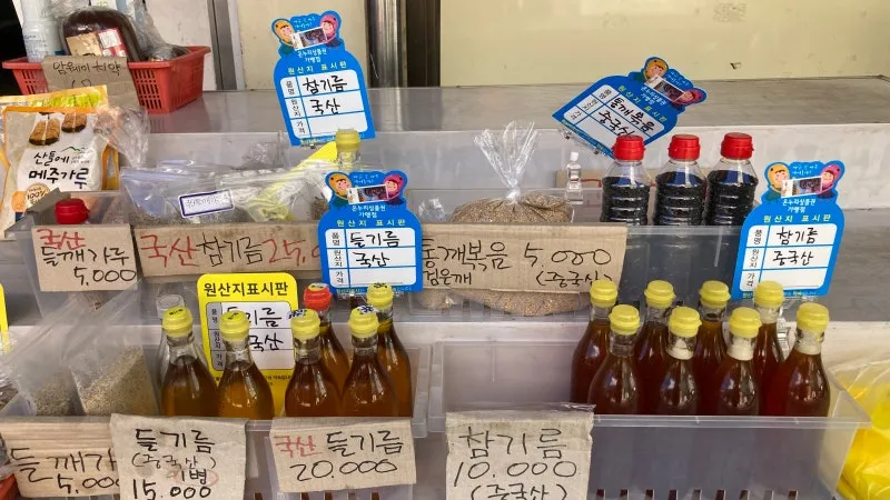 시장을 걷다 보면 전통 한과, 수제 김치, 직접 재배한 채소 등 고령의 농가에서 생산한 제품들을 구입할 수 있습니다.