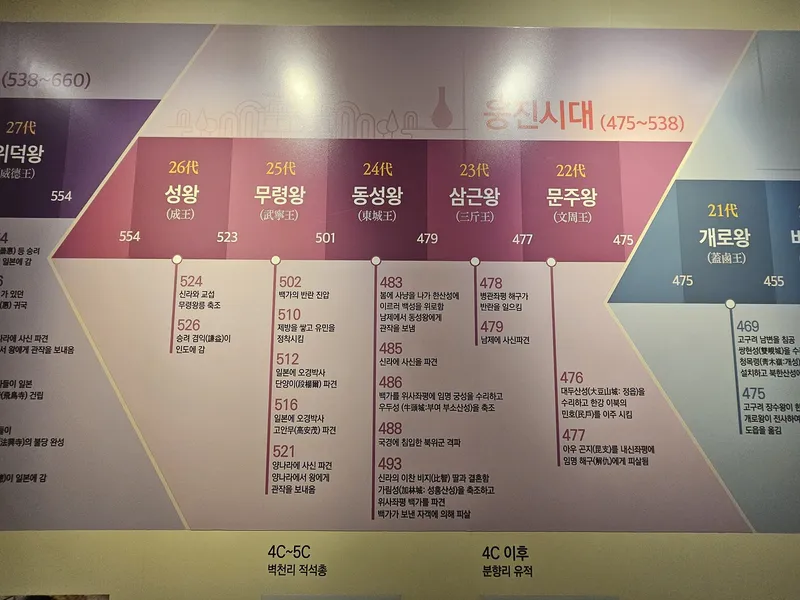 백제왕의 업적들이 한 곳에 모여있어 천천히 살펴보기 좋습니다.