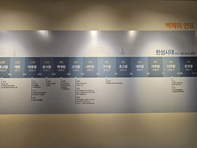 1대 온조왕~ 21대 개로왕 역사를 살펴볼 수 있는데