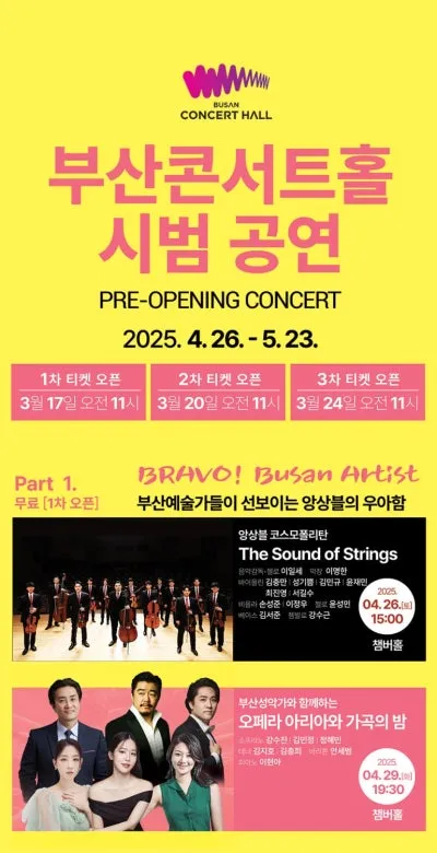 클래식부산, 부산콘서트홀 개관 전 '시범공연' 3월 20일 2차 티켓 예매 개시
