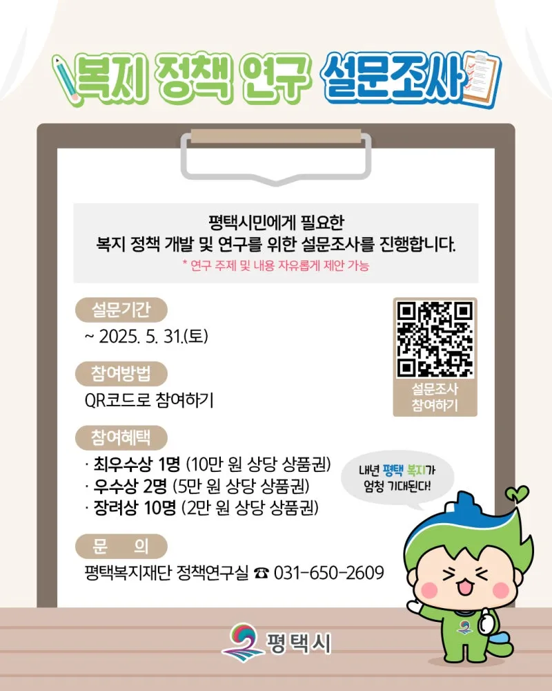 내가 만드는 평택 복지! 복지정책연구 설문조사 참여하세요!