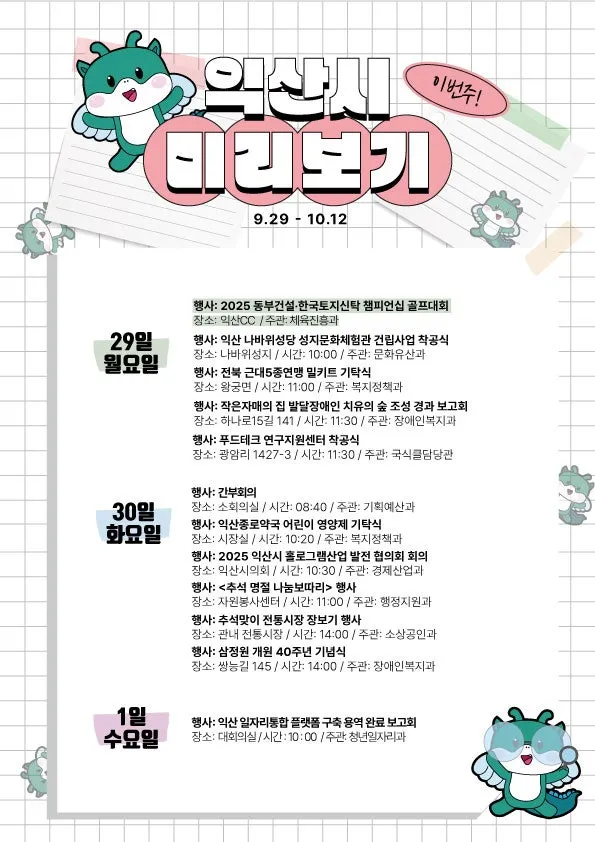 📢 익산시 주간 주요 일정 (9.29. ~ 10.12.) 📢