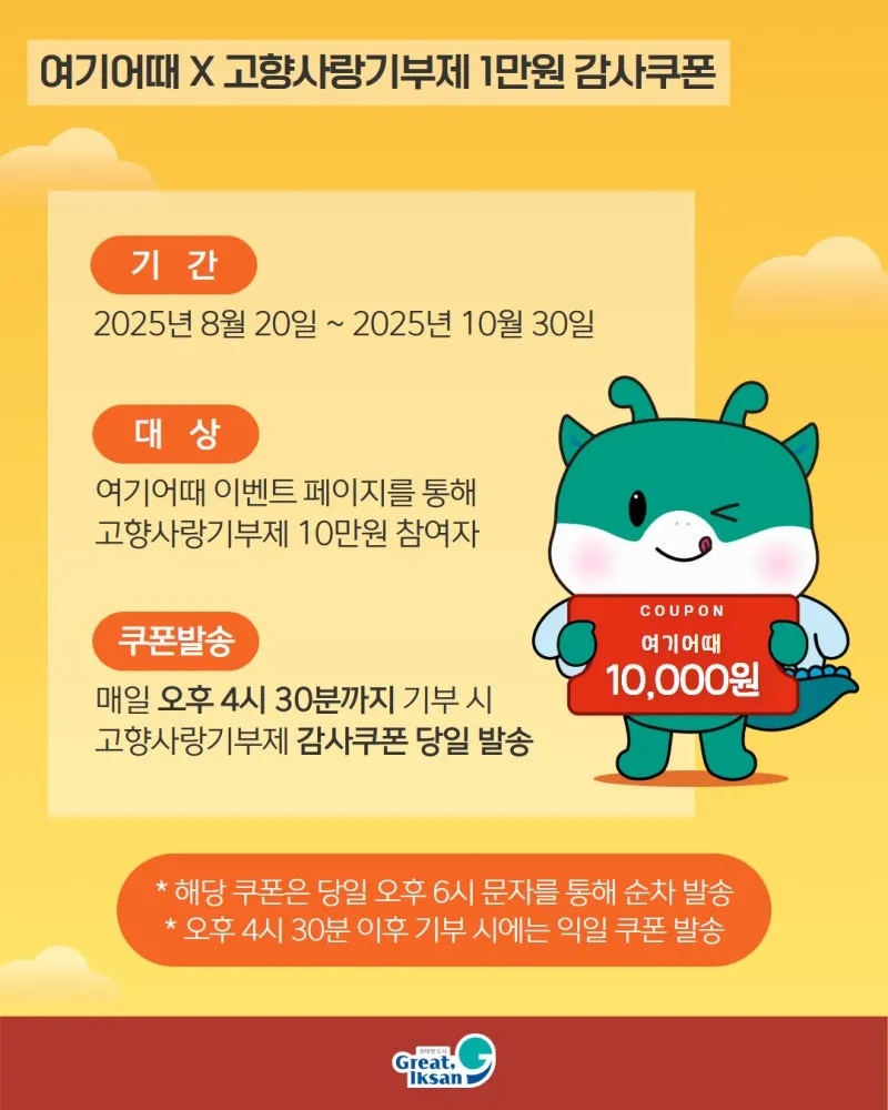 🎯 대상: 위기브 이벤트 페이지에서 익산시에 10만원 이상 고향사랑기부를 하신 분