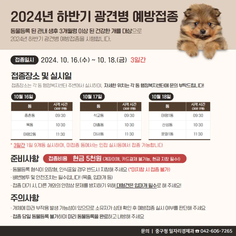 (3일간!!!) 2024년 하반기 광견병 예방접종