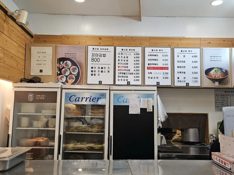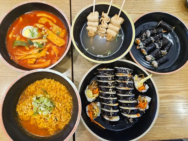 김밥, 떡볶이, 어묵, 순대, 라면(메밀소바, 쫄면, 우동)