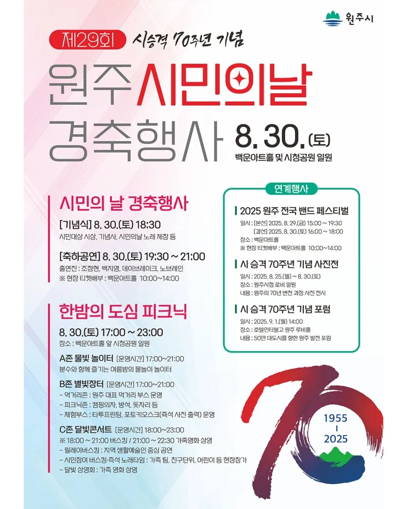 시승격 70주년 기념, 원주 시민의 날 경축행사 함께해요~