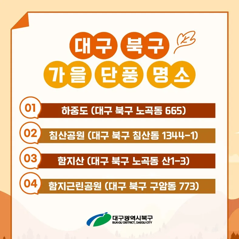 대구 북구 가을 단풍 명소::대구가을가볼만한곳, 북구단풍명소