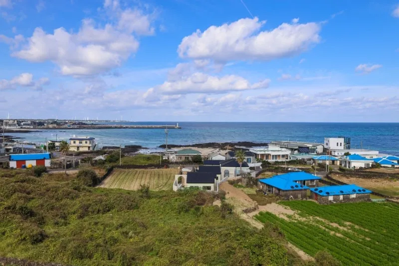 푸른 바다와 어촌 마을의 아름다운 풍경이 한눈에 펼쳐졌습니다.
