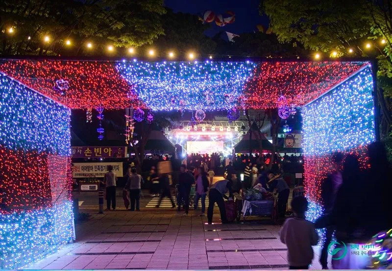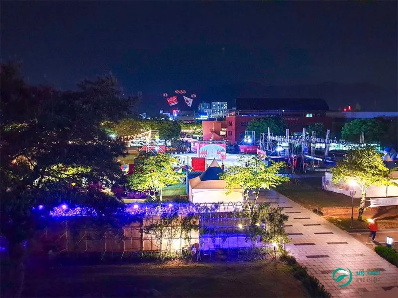 의령 홍의장군 축제장과 의령읍의 아름다운 야경