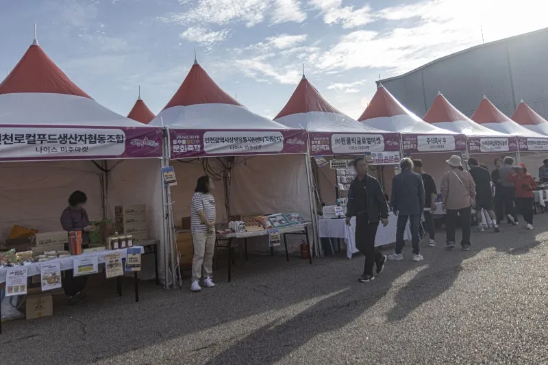 ‘2024년 사회적경제와 함께하는 미추마켓’이라는 타이틀에서 알 수 있듯이, 나이스 미추마켓은 일반 판매자가 아닌 사회적경제기업과 조직이 참여한 마켓으로, 미추홀구 블로그에서도 소개한 적이 있는 인천광역시 상생유통지원센터 ‘더담지’, 인천로컬푸드생산자협동조합, ㈜이주여성희망나눔터, 인천광역시 협동조합협의회, 협동조합 다락 등이 참여했습니다. 청년창업기업이 빠지고, 여러 행사를 한곳에서 진행하니 나이스 미추마켓의 규모가 축소된 것은 살짝 아쉬웠습니다.