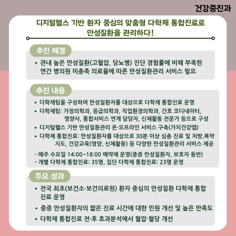 디지털헬스 기반 환자 중심의 맞춤형 다학제 통합진료로 만성질환을 관리하다!