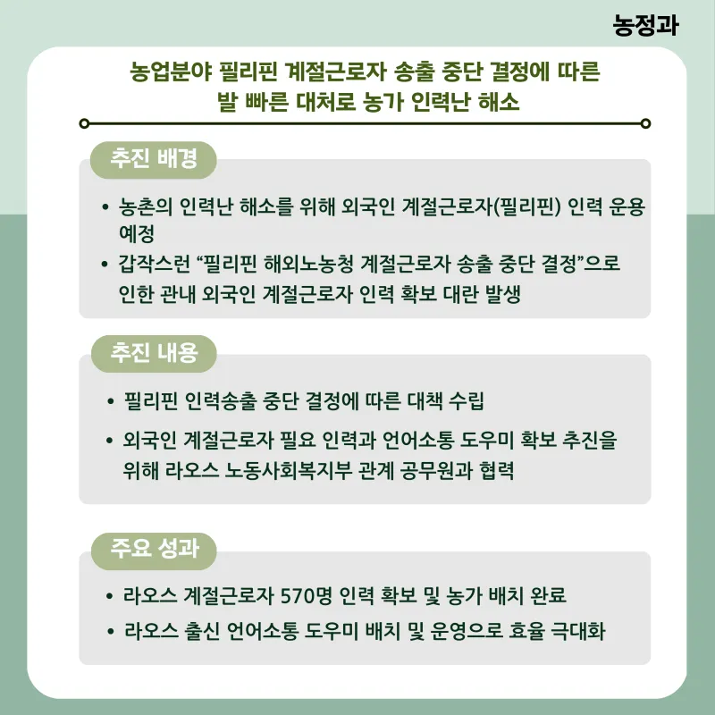 발 빠른 대처로 농가 인력난 해소