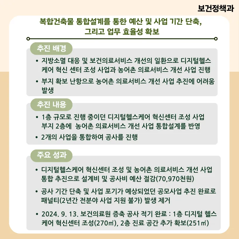 복합건축물 통합설계를 통한 예산 및 사업 기간 단축,