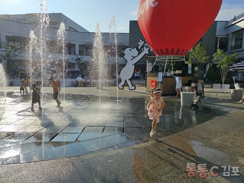 바닥에 분수도 나와서 사람들이