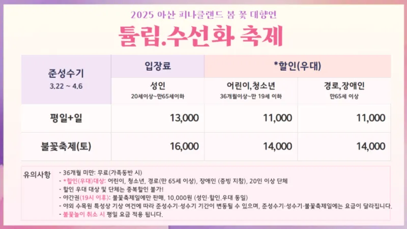 천안 근교 아산 피나클랜드 수목원 튤립 개화 현황 및 입장료