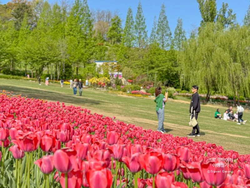 잔디광장 뒤쪽으로 펼쳐진 튤립밭(우) 모두