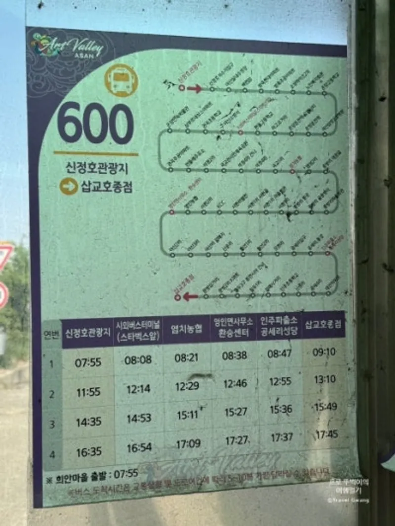 600번 버스를 타고 이동했어요.