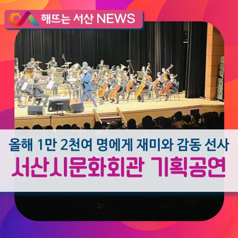 서산시 기획 공연, 올해 1만 2천여 명에게 재미와 감동 선사- 서산시, 올해 1월부터 12월까지 서산시 문화회관에서 총 24회 공연 선보여 -충남 서산시가 제공하는 기획 공연이 시민의 공연 문화 향유에 이바지하고 있다. 시에 따르면, 올해 1월부터 11월까지 서산시 문화회관에서 진행된 기획 공연은 총 24개로, 약 1만 2천여 명이 입장한 것으로 나타났다. 기획 공연은 시민이 가까운 곳에서 부담 없는 관람료로 다양한 장르의 수준 높은 작품을 즐길 수 있도록 마련됐다. 클래식, 연극, 뮤지컬, 콘서트, 국악, 마술 등 다양한 장르로...