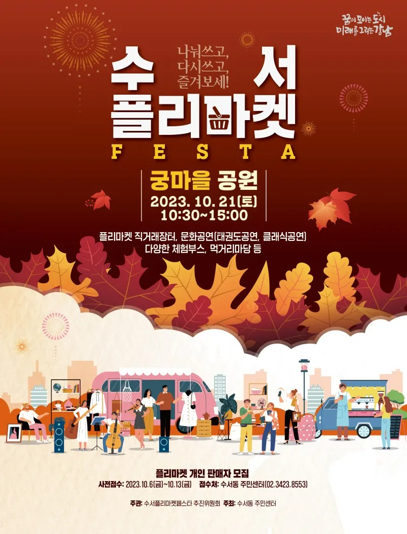 이번주 토요일(10/21) 제18회 수서 플리마켓 FESTA에 놀러오세요!