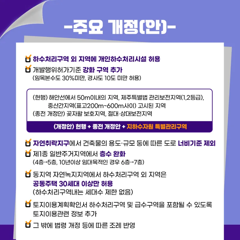 개인하수처리시설 허용, 난개발 방지 개발행위 허가기준 강화