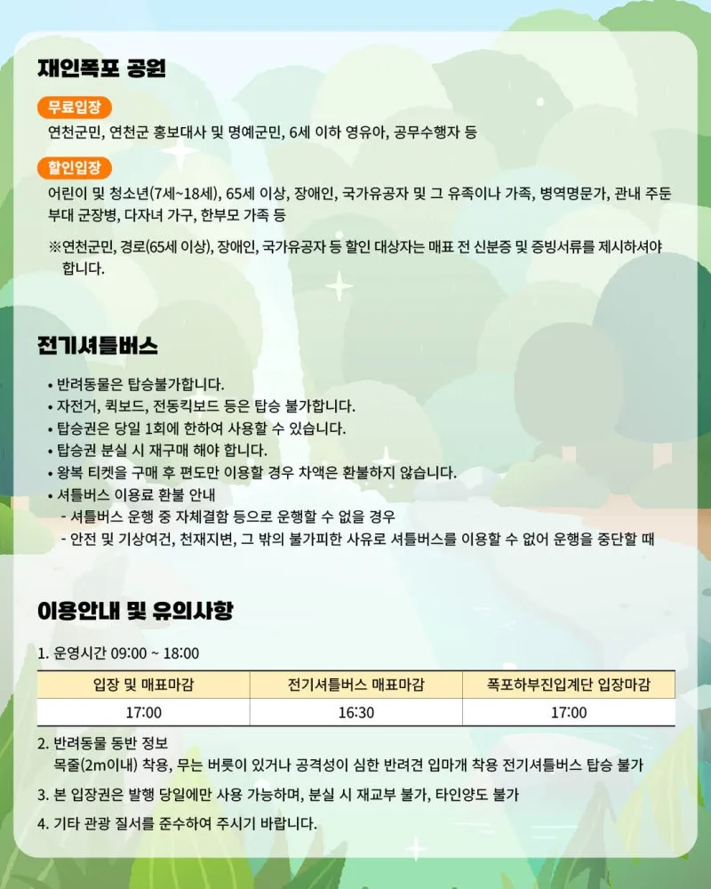 ️2025년 9월부터 달라지는 재인폭포 관람 입장료 안내