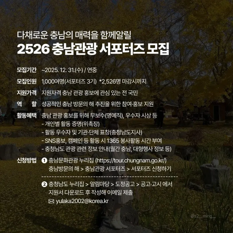 충남 관광 홍보를 위해 무보수(명예직), 우수자 시상 등
