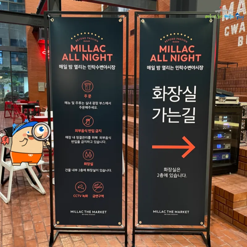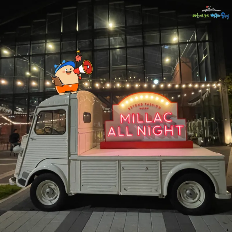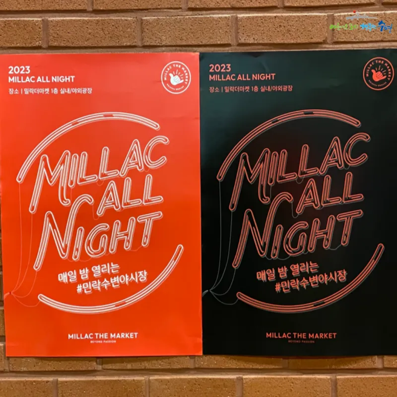 외부에는 밀락 올나잇이라는 야시장 오픈을 알려주는