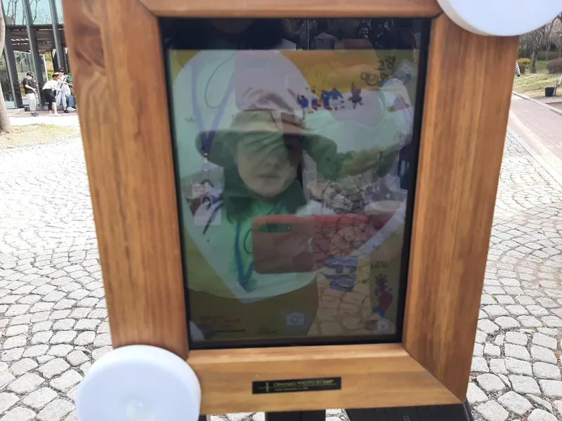 다양한 배경 합성이 가능한 크로마큐로 사진 촬영 후 SNS로 무료로 전송이 되는데 터치를 해서