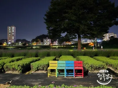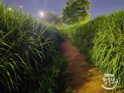 밤이지만 맨발걷기를 즐기는 분들이 꽤 계시더라고요. 가로등이 밝게 켜져 있어 안전하고, 꽃길 사이로 걷는 기분이 아주 끝내줍니다. ㅎㅎ