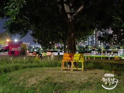 삼신현대 아파트 건너편 쪽 강변에 '장생이 위드커피' 가 있어, 가끔은 음료 한 잔 사서 벤치에 앉아 여유를 부려보는 것도 운치 있을 것 같아요.