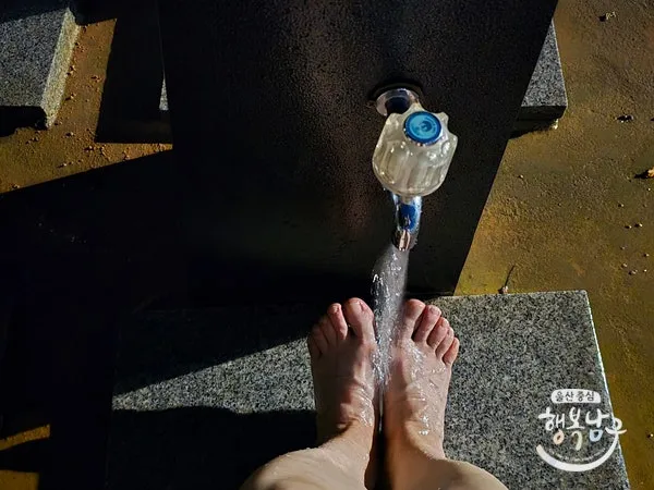 맨발걷기가코스 중간에 세족장이 몇 군데 있어요.