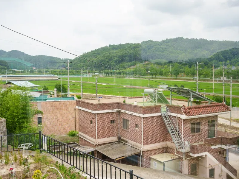 그리고 창밖으로 보이는 초록 빛깔의 농촌 전경은