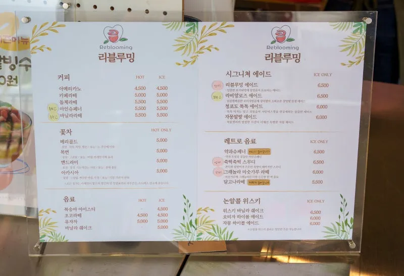 커피와 꽃차, 아이스티를 비롯하여 에이드와 스무디까지