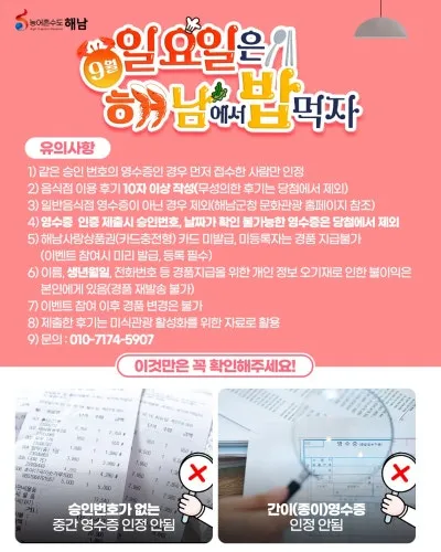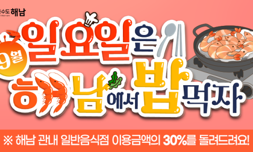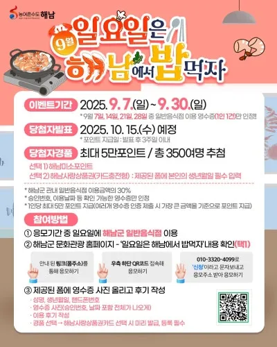 📢 9월! 일요일은 해남에서 밥 먹자 이벤트!