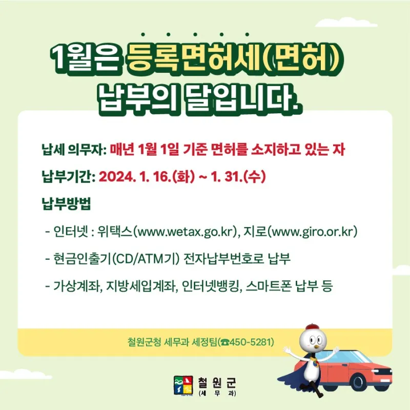 ☎️문의 : 철원군청 세무과 세정팀(☎450-5281)