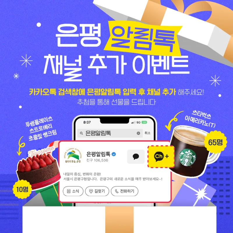 은평알림톡 채널 추가 이벤트 "은평구 카카오톡 채널 추가하고 선물 받자"