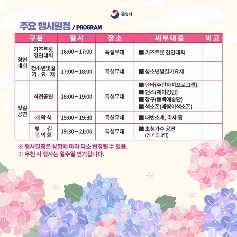 행사 일정은 상황에 따라 변경될 수 있으며,