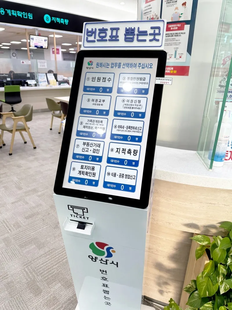 소통민원실에 들어오면 번호표 뽑는 기계가 있는데