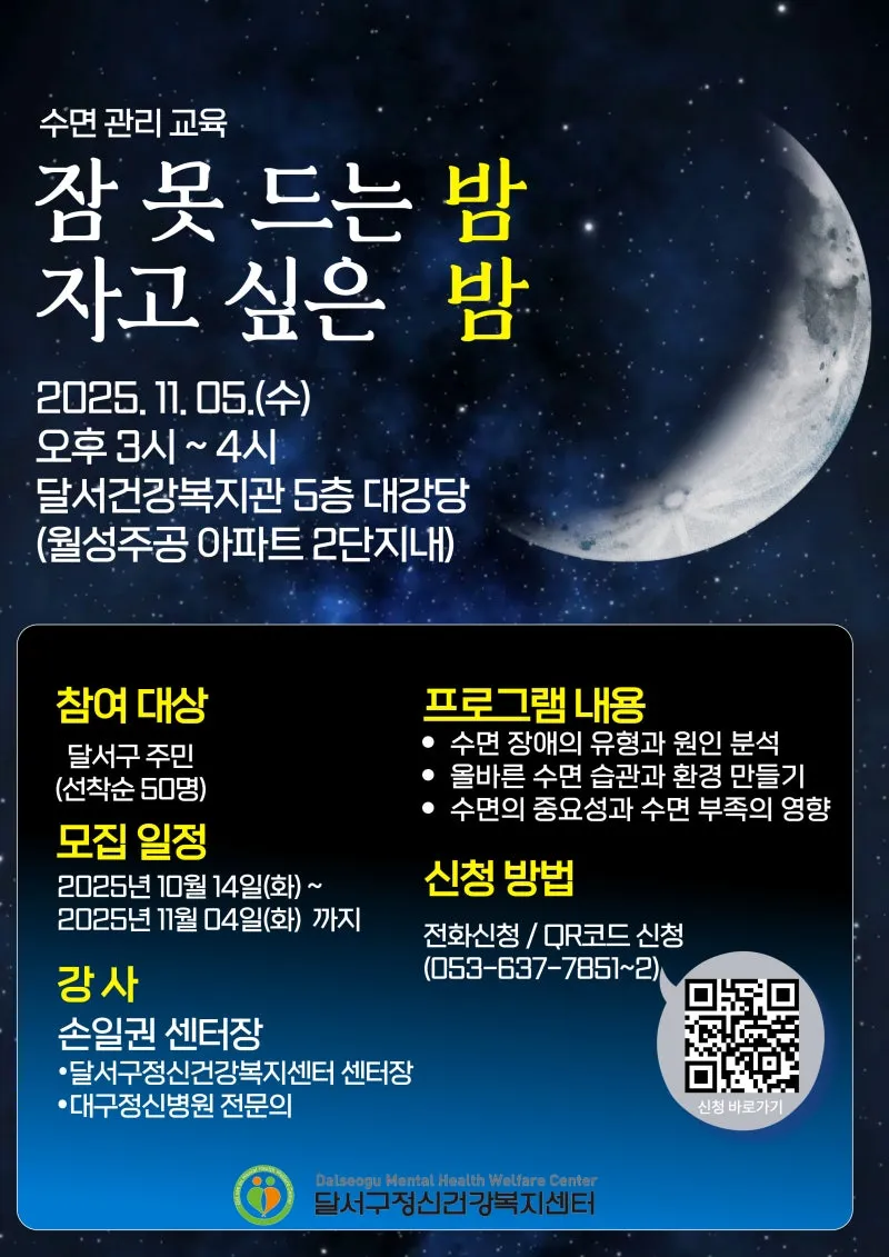#대구달서구 #달서구청 #달서구정신건강복지센터 #수면관리교육 #불면증 #꿀잠 #숙면 #달서건강복지관 #건강강좌